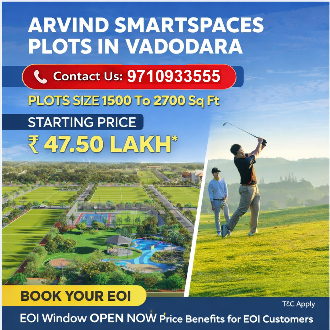 Vadodara’s real estate market is witnessing consistent growth, especially in plotted developments by reputed developers like Arvind SmartSpaces. With starting prices from ₹47.5 Lacs* and exclusive launch offers, Arvind Greenfield presents a strong investment opportunity.